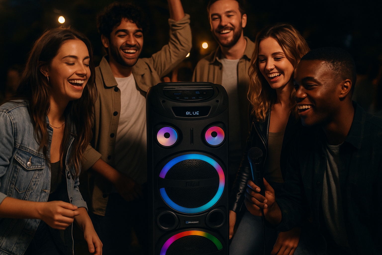Zum Lieferumfang gehört ein Bluetooth-Mikrofon mit Echoeffekt – perfekt für Karaoke, Moderationen oder private Feiern. Das große LED-Display sorgt für einfache Bedienung und klare Übersicht über alle Funktionen.