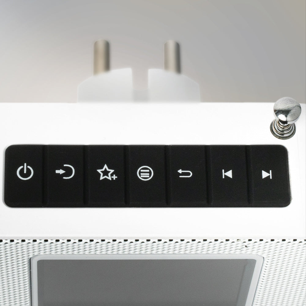 Das DAB+ Steckdosenradio bietet eine einfache Bedienung über eine Kombination aus gängigen Knöpfen und Drehreglern.