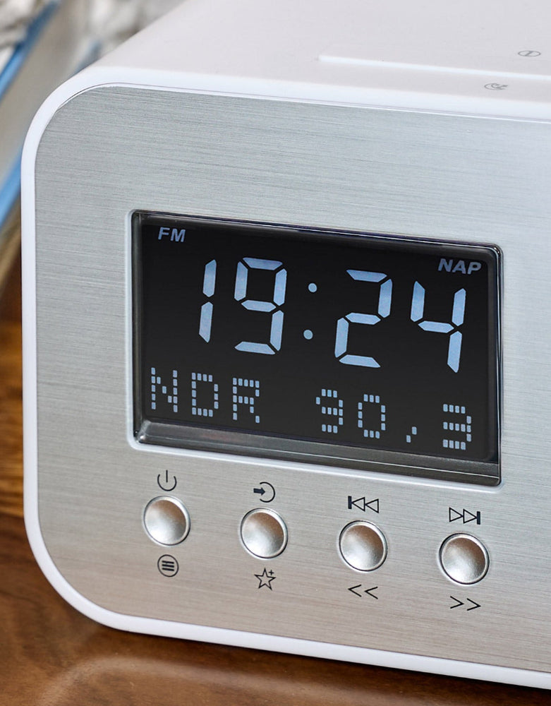 The CLRD 40 combines modern design with well -thought -out technology - for moments that make everyday life easier. Whether gentle wake up with your favorite, wireless music streaming via Bluetooth or nightly charging via the USB connection-this compact device adapts to every rhythm. The dimmable display ensures calm at night, while DAB+ stands for a clear sound in the morning. A radio alarm clock that combines functionality with atmosphere.